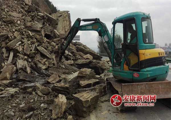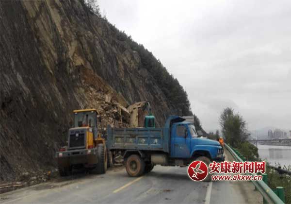 安康新聞網(wǎng)訊 (通訊員 葛松 張歡) 10月29日上午,瀛湖干道K1+050處,一臺挖掘機(jī)一臺裝載機(jī)正在緊張清除道路塌方。