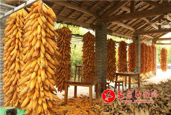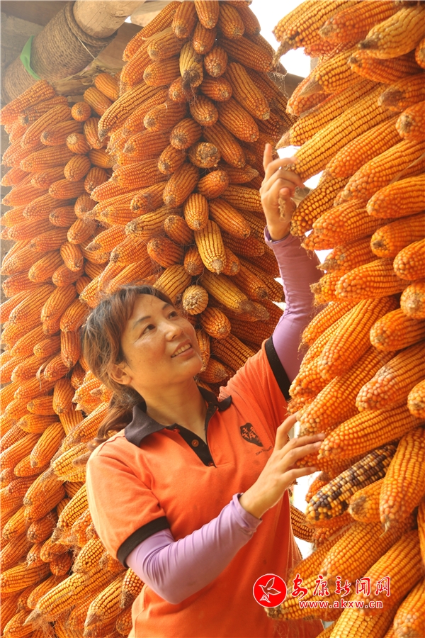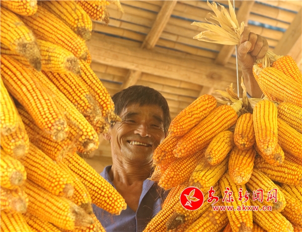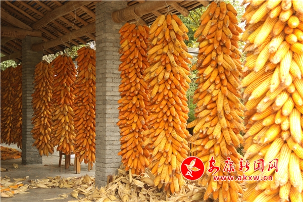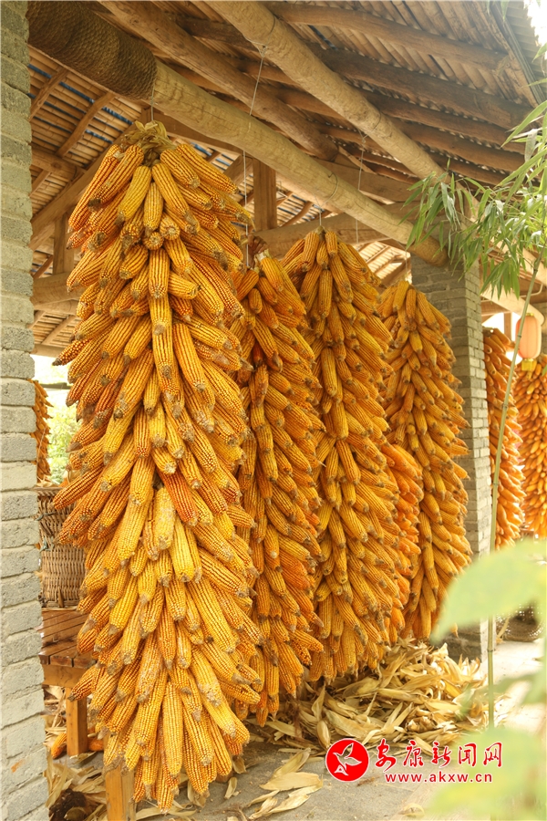 辛勞了大半年的村民,面對(duì)掛滿(mǎn)庭院的金色玉米,掩不住內(nèi)心豐收的喜悅和滿(mǎn)意的笑容。