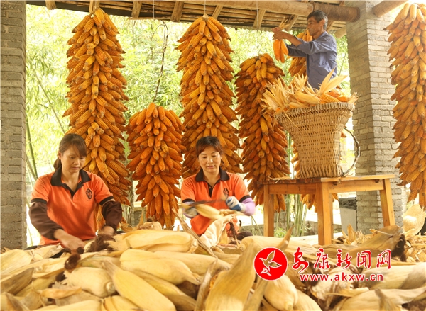 有的忙于運(yùn)送,有的忙于剝穗,有的忙于上架,豐收的喜慶洋溢在每一個(gè)角落。