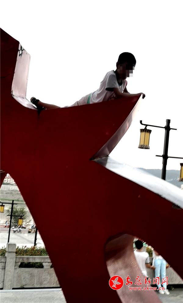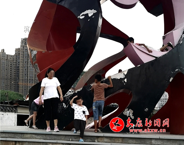 近日,記者在漢調(diào)二黃文化園看到,游玩的市民絡(luò)繹不絕,大部分市民都能做到文明游園,但其中也存在不文明行為。這里是文化園主題雕塑,幾個(gè)10歲左右的小男孩不斷攀爬雕塑,并在離地面約2米的高處逗留,現(xiàn)場(chǎng)既無工作人員勸導(dǎo)也沒有“禁止攀爬”的相關(guān)提示牌。記者 潘潤生 攝