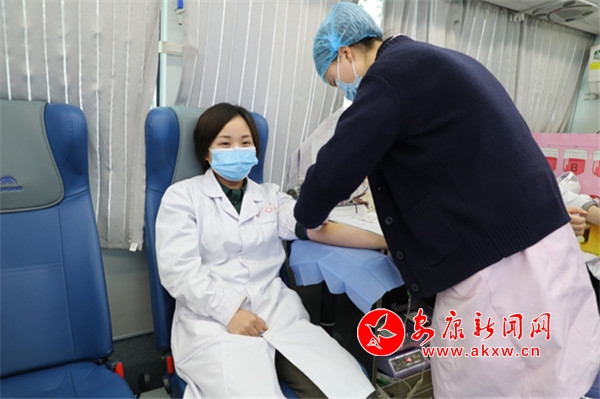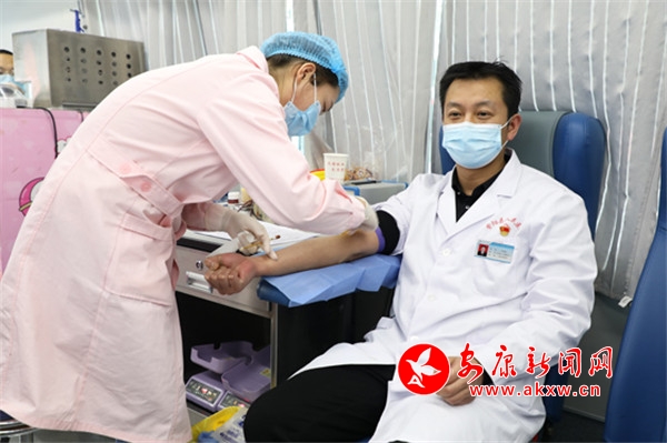 院長張海波,副院長吳小艷帶頭獻(xiàn)血。