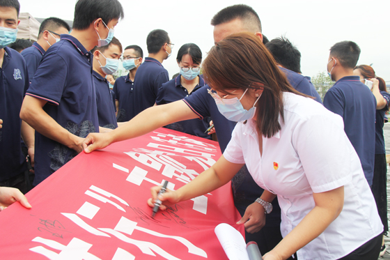 隨后現(xiàn)場(chǎng)職工還在無償獻(xiàn)血?jiǎng)訂T橫幅上集體簽名留念。