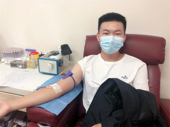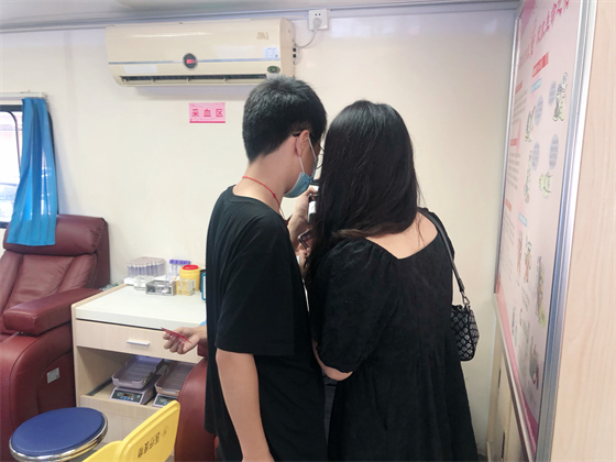 中秋節(jié)不僅街上熱鬧,獻(xiàn)血車上也熱鬧,鄧孟杰正坐在采血椅上獻(xiàn)血,他漂亮大方的女友站在旁邊跟他聊著晚上要吃什么,女友的弟弟坐在遠(yuǎn)一點(diǎn)的地方玩著手機(jī),女友的媽媽則坐在體檢桌前測(cè)量血壓,“一人獻(xiàn)血,三人陪同”的場(chǎng)景著實(shí)有點(diǎn)可愛,但鄧孟杰笑得十分開心,一直想獻(xiàn)血的他特別選了中秋這個(gè)日子,大概也是想和愛人親人一起分享這種美妙的人生體驗(yàn)。鄧孟杰的女友拿起他的獻(xiàn)血證撒嬌到:“這次我們陪你,下次你也要陪我來獻(xiàn)血?!闭f完把手機(jī)塞給了一旁的弟弟,指揮他給自己和男友拍合照,一邊打趣弟弟拍照技術(shù)不好一邊把男友手里獻(xiàn)血證的位置調(diào)了又調(diào)。