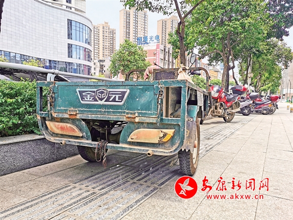 ?6月22日,安康城區(qū)江北江華公司消防通道被摩托車占用(圖1),這一區(qū)域的人行道盲道也被各種車輛侵占(圖2),存在安全隱患。(記者 潘潤(rùn)生 攝)