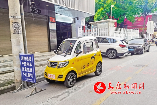 6月27日,安康城區(qū)金州南路報(bào)社巷違規(guī)停車(chē)。(記者 張喬 攝)