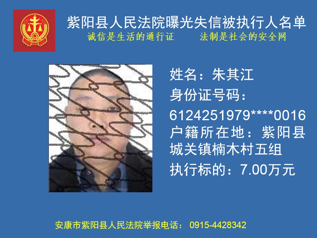 曝光失信 | 紫陽(yáng)縣人民法院:關(guān)于敦促朱其江履行法定義務(wù)的公告
