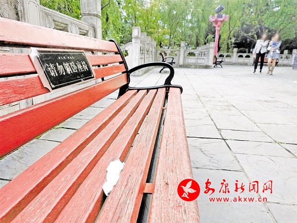 游人在景區(qū)長(zhǎng)凳上丟下的垃圾