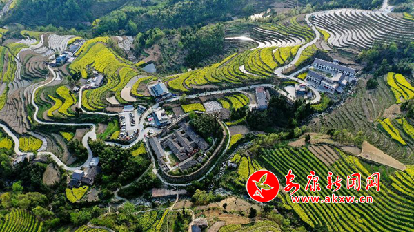 三三兩兩的房屋,就掩映在層疊的菜花梯田間,潔白的墻面,黛青的屋瓦,金燦的菜花,有種遺世獨立的靜美,塵世的喧囂一下子就遠(yuǎn)了。尋一條鄉(xiāng)野小徑,步入茫茫花田間,不時有蜂蝶流連,孩童嬉鬧,農(nóng)人牽著牛自不遠(yuǎn)的長橋上悠悠走過,處處都流淌著鄉(xiāng)村田園的盎然春意。