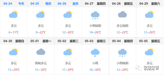據(jù)氣象部門預(yù)測,“五一”期間,天氣較好。有出行計劃,需持續(xù)關(guān)注天氣情況,以便做好準(zhǔn)備。