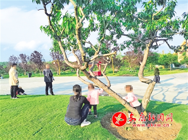 “五一”期間,在高新區(qū)桃花源景區(qū),個別游客帶領(lǐng)小孩未按照相關(guān)規(guī)定文明規(guī)范游玩,小孩攀爬樹木,很是危險。(陳榮斌 攝)