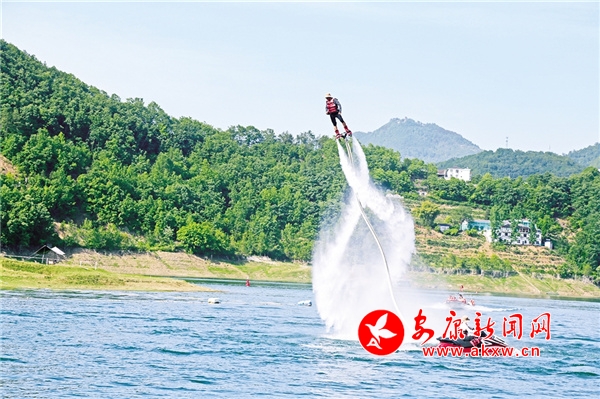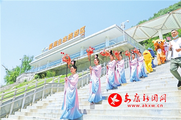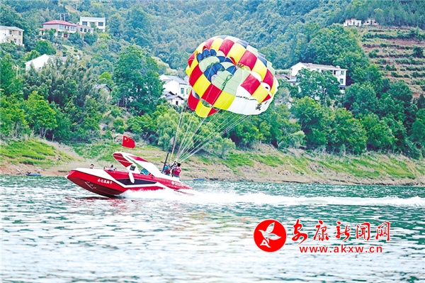 休閑勝地翠屏島,最大的亮點(diǎn)是玉清橋的彩虹瀑布,游客從橋下經(jīng)過,感受“瀛湖之水天上來”的曼妙,這也是瀛湖為游客送上的初夏第一絲清涼。橋頭幸福的天梯、鳥巢,成為排隊拍照的絕佳點(diǎn)位。運(yùn)動場上,滾鐵環(huán)、射箭、投壺、打籃球,讓游客流連忘返。兒童樂園旁,微型爆米花機(jī)勾起了孩子們參與的興趣,彩繪激發(fā)了孩子們的繪畫熱情。瀛湖水上嘉年華,精彩刺激的水上項目帶給游客酣暢的體驗(yàn),游客紛紛直呼“過癮”!