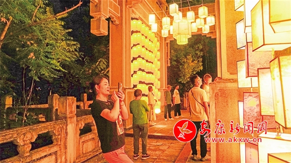 在安瀾樓南側(cè),刻有金州八景的燈籠高高懸掛,穿上漢服,提著燈籠,走向瀾上燈會,感受花燈如晝。移步廊道,徜徉安瀾夜市,感受煥然一新的公園氛圍、琳瑯滿目的文創(chuàng)精品和目不暇接的特色非遺。
