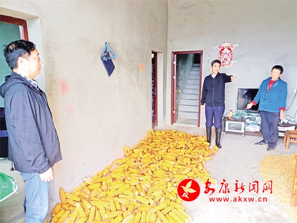 國慶長假期間降雨不斷,漢濱區(qū)稅務局駐村幫扶隊工作人員堅持節(jié)假日值班值守。圖為10月4日,該局駐村工作隊員深入農(nóng)戶了解村民秋糧作物晾曬情況。陳榮斌 攝