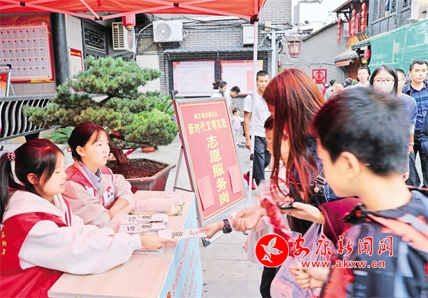 中秋國慶節(jié)假期,石泉縣在景區(qū)景點(diǎn)以及人流、車流集中地安排志愿服務(wù)點(diǎn),積極組織文明實(shí)踐志愿者,為游客提供旅游咨詢、文明引導(dǎo)等服務(wù)。董長(zhǎng)松 攝
