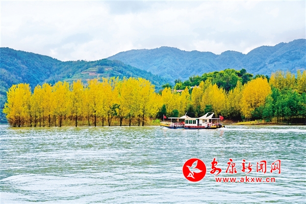 10月3日,秋日的瀛湖如詩如畫,吸引眾多游客前來打卡。周濬 攝?