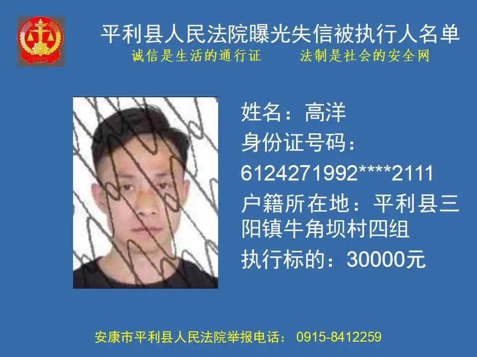 曝光失信 | 平利縣人民法院曝光失信被執(zhí)行人名單(2023年第四期)