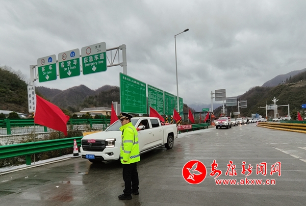 本網(wǎng)訊(楊明海 張旭)2月21日,因降雪結(jié)冰,安康境內(nèi)多條高速臨時(shí)性交通管制。在安(康)來(lái)(鳳)高速平(利)鎮(zhèn)(坪)段鐘寶收費(fèi)站外廣場(chǎng),一支迎親車隊(duì)被滯留,陜西交控安平分公司鎮(zhèn)坪管理所緊急相助,為新人打通“幸福路”。