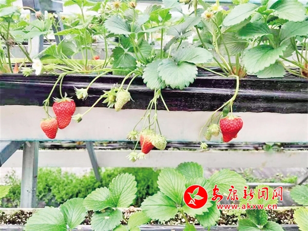 “‘高架草莓’不僅節(jié)約人力,能讓大家冬天也能吃到鮮甜可口的草莓,也不用擔(dān)心降溫、大雪等天氣影響。懸空種植還方便工人以及游客進(jìn)行采摘,許多周邊群眾慕名而來,體驗(yàn)‘開心農(nóng)場’。”園區(qū)技術(shù)員曹峰說。