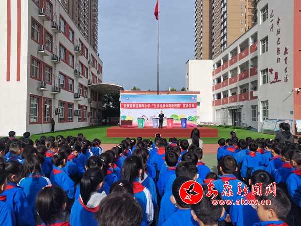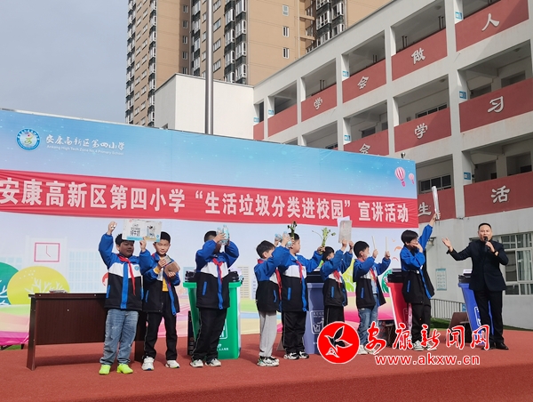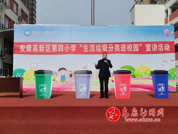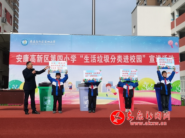 本網(wǎng)訊(通訊員 王宗濤)“同學(xué)們,我們是環(huán)境保護(hù)小天使,我們要讓山更青,水更綠,天更藍(lán),我們生活的家園更美麗!我們應(yīng)該養(yǎng)成垃圾分類的好習(xí)慣。”4月9日上午,春陽燦爛的安康高新區(qū)第四小學(xué)的操場上,生活垃圾分類“進(jìn)校園”宣講活動火熱進(jìn)行中。