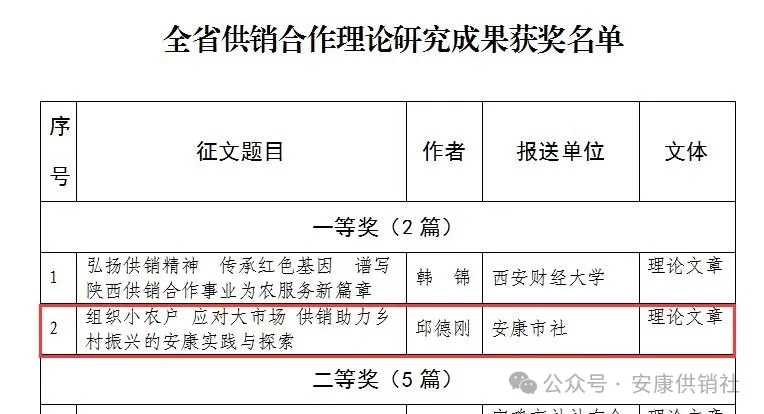 按:本文系安康市供銷(xiāo)合作社黨組書(shū)記、理事會(huì)主任邱德剛署名理論文章,立足供銷(xiāo)助力鄉(xiāng)村振興的安康實(shí)踐與探索,深入闡述了“組織小農(nóng)戶(hù)應(yīng)對(duì)大市場(chǎng)”的內(nèi)在邏輯,把群眾“組織起來(lái)”投身經(jīng)濟(jì)合作的實(shí)踐方法,在助力鄉(xiāng)村振興、推進(jìn)共同富裕實(shí)踐中探索出一條可復(fù)制可推廣的典型經(jīng)驗(yàn),其理論內(nèi)涵、實(shí)踐邏輯為在推進(jìn)鄉(xiāng)村振興中更好發(fā)揮供銷(xiāo)社的獨(dú)特優(yōu)勢(shì)和重要作用提供了有益參考,具有較強(qiáng)的指導(dǎo)意義。該文在中華全國(guó)供銷(xiāo)總社和陜西省供銷(xiāo)總社“薪火相傳七十載,砥礪奮進(jìn)新時(shí)代”主題征文中獲評(píng)“全省供銷(xiāo)合作理論研究成果一等獎(jiǎng)”。