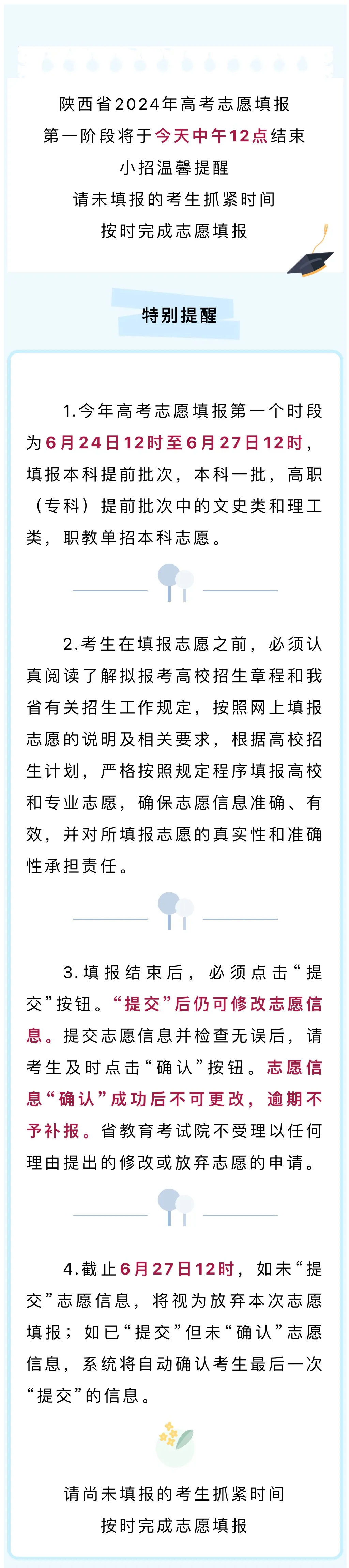 原題目:高考志愿填報(bào)將于今日中午12點(diǎn)結(jié)束,請尚未完成的考生抓緊時(shí)間