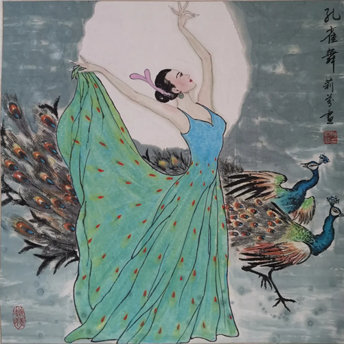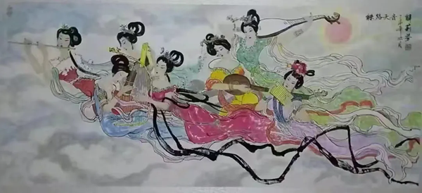 解大姐是陜北人,性格開(kāi)朗、直率,說(shuō)話中間或帶出一些濃重的陜北口音。雖說(shuō)她主業(yè)從于政界,但她微笑的背后卻潛藏著不可掩飾的藝術(shù)天賦,揮發(fā)著令人奪目的藝術(shù)才情。繁雜的政務(wù)工作之余,她創(chuàng)作不輟,堅(jiān)持不懈,居然在多個(gè)藝術(shù)門(mén)類(lèi)收獲頗豐,好評(píng)連連。寫(xiě)小說(shuō),她寫(xiě)出幾十萬(wàn)字的長(zhǎng)篇出版發(fā)行;寫(xiě)劇本,竟拍成了電影予以公映;學(xué)國(guó)畫(huà),亦讓藝術(shù)界的大咖贊口不絕。我雖不才,空有浮名,但深耕藝界多年,對(duì)于其中的好賴還能分出一二。我感到,一個(gè)人的人品和藝品基本一致,解大姐的藝術(shù),是扎根于她熟悉的陜北大地的藝術(shù),是生長(zhǎng)在山峁峁上經(jīng)歷風(fēng)霜雨雪的藝術(shù),就像那陜北倔強(qiáng)的疙瘩柳,散發(fā)著對(duì)土地對(duì)生活的親近和熱情,對(duì)人生價(jià)值實(shí)現(xiàn)的不屈和追求。看到她的國(guó)畫(huà)新作,有陜北剪紙等民間藝術(shù)的滋養(yǎng)和影響,真切而樸實(shí)。她的飛天人物系列,泥古而不落窠臼,使我想到疙瘩柳條隨風(fēng)擺動(dòng)的婀娜風(fēng)姿,溫溫潤(rùn)潤(rùn),令人遐思和向往;她的花鳥(niǎo)畫(huà)作,使我想到陜北山野一片蒼茫之間,一朵兩朵盛開(kāi)的山丹丹花,嬌艷得令人不忍觸手;她的山水畫(huà)作,又猶如陜北山原上嫩黃的棗花,洋溢著撲面而來(lái)的質(zhì)樸、清新和率真之氣。