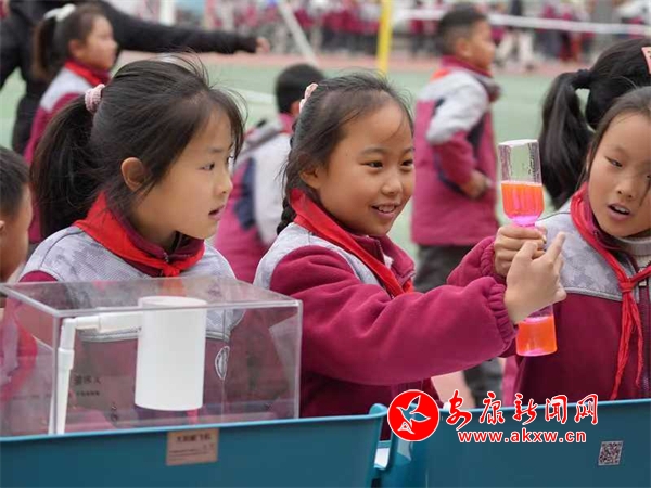 在各個(gè)科學(xué)實(shí)驗(yàn)項(xiàng)目前,同學(xué)們駐足停留,認(rèn)真觀察、反復(fù)操作,沉浸在知識(shí)的海洋與科技的奧秘中,操場(chǎng)上不時(shí)傳來(lái)陣陣驚嘆聲?!拔易罡信d趣的是機(jī)器人,通過(guò)手柄遙控能讓機(jī)器人模仿奔跑跳躍,跟我們打招呼,真是太神奇了,我以后要更加努力地學(xué)習(xí)科學(xué)知識(shí),探索更多的未知領(lǐng)域?!蔽迥昙?jí)一學(xué)生激動(dòng)地說(shuō)。