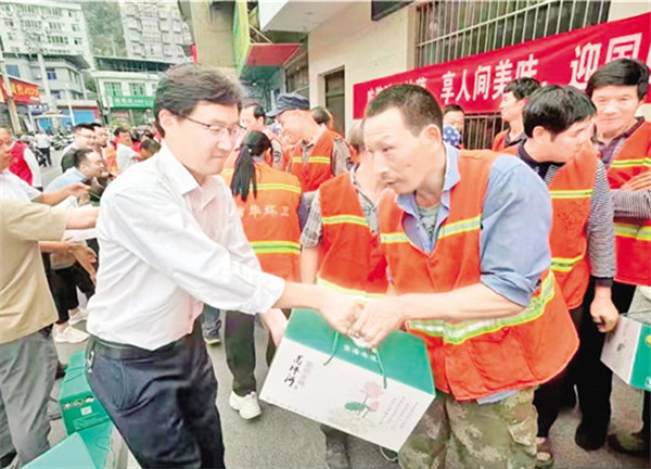 在國(guó)慶佳節(jié)前夕,蒿坪鎮(zhèn)黨委政府精心組織了一場(chǎng)別開(kāi)生面的“吃豬蹄子燉藕,享人間美味,迎國(guó)慶佳節(jié),向環(huán)保衛(wèi)士致敬”主題慰問(wèn)活動(dòng)。 劉姝含 攝