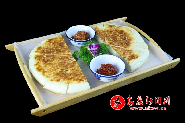 “甜酒火燒饃”,是石泉縣幾代人美食智慧的積累,傳承至今,是深受人們喜愛的小吃。它是采用古老傳統(tǒng)老酵面加甜酒發(fā)面,將老酵面、甜酒加入溫水后,再加入面粉一起攪拌均勻后再揉面。把面團(tuán)揉制光亮后放置幾小時(shí)待其自然發(fā)酵。等到面團(tuán)成發(fā)泡蜂窩狀態(tài),才可以開始將面團(tuán)做成圓形,在用搟面杖搟薄圓形面團(tuán)放入柴火灶鍋中,撒上芝麻,小火炕制一面黃在翻面炕制兩面色澤金黃。吃進(jìn)嘴里有小麥淡淡的清香味,也有甜酒的甜香味,回味無(wú)窮。杜光發(fā)制作的這道小吃獲得安康市2024年“安康味道”名小吃。