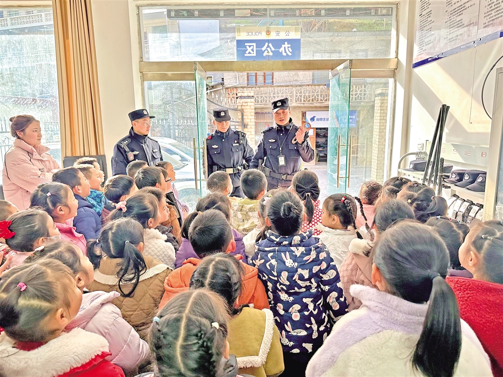1月8日,紫陽縣公安局高橋派出所舉行“萌娃進(jìn)警營 警心伴童心”主題110宣傳日警營開放活動(dòng),邀請轄區(qū)學(xué)校師生走進(jìn)警營,感受警營文化。陳益謙 攝