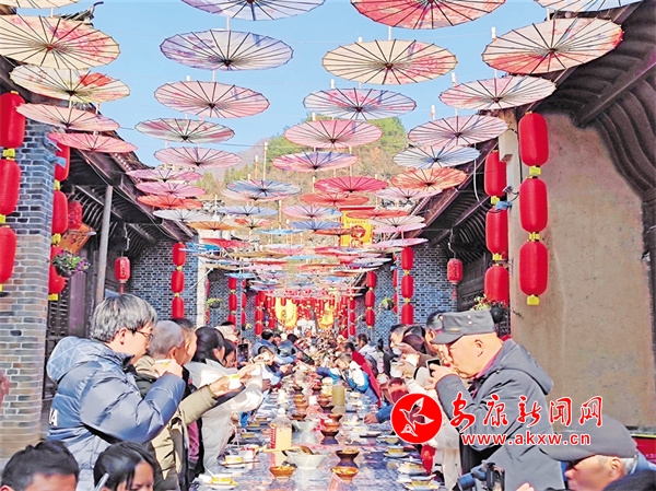 “觀眾朋友們大家好,這里是雙河口古鎮(zhèn),歡迎大家來到庖湯桌宴的活動現(xiàn)場!”冬季庖湯長桌宴的舉辦地,是修葺一新的驛道文化廣場,游客在這里觀看精彩的文藝節(jié)目,品嘗本土特色美食,欣賞茶馬古道歷史浮雕,品味雙河口魅力故事。該項目是2024年7月19日洪災后,為修復損壞的護坡,依托現(xiàn)有地形條件,盤活原有閑置資源重新改造的文化廣場項目,于當年10月1日建成投用。項目建成后,古鎮(zhèn)的景區(qū)框架拉得更寬,文化活動載體變得更大,文化內容展示更加生動,配合12月31日建成投用的省級鄉(xiāng)村振興示范鎮(zhèn)展陳室項目,雙河口的歷史文化和人文故事變得可感可知,成為古鎮(zhèn)一處新的地標性“打卡地”。