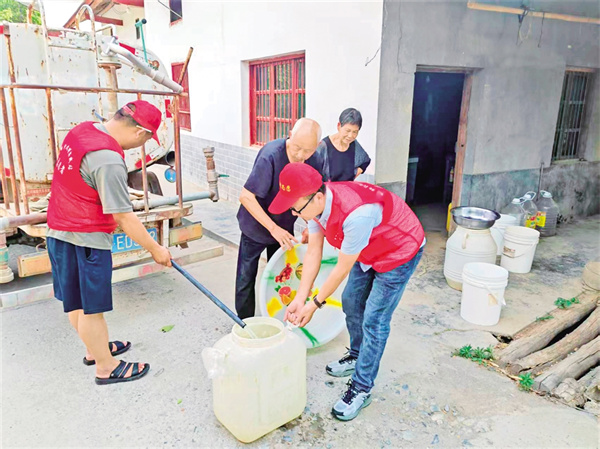 5月20日,嵐皋縣藺河鎮(zhèn)和平村的一處院落里,村民余井貴望著鎮(zhèn)人大代表李鵬與送水志愿者李增歡等人駕駛送水車(chē)而來(lái),緊鎖的眉頭終于舒展,喃喃道:“哎呀,小李他們又來(lái)送水了!”