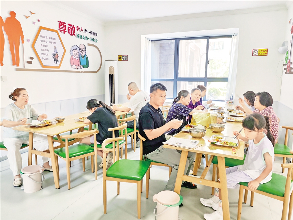 小區(qū)的日間照料中心內(nèi),用餐區(qū)、棋牌室、兒童娛樂室、書法室等一應俱全,是居民們心中溫暖的港灣。70多歲的獨居老人袁興瓊,除每周兩次透析外,幾乎都在中心度過?!笆程蔑埐丝煽?,價格也便宜,菜單每天在微信群更新。我們這些老人過上了放下鍋鏟、直接走向餐桌的好日子,每天還有人陪著聊天,生活很舒坦?!?/p>