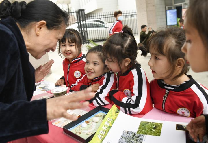2024年4月16日,在新疆烏魯木齊市天山區(qū)南灣街街道,昌樂(lè)園幼兒園的小朋友在老師的講解下了解春蠶的生長(zhǎng)過(guò)程。谷雨節(jié)氣將至,烏魯木齊市一些社區(qū)紛紛開(kāi)展形式多樣的主題活動(dòng),讓市民了解有關(guān)谷雨節(jié)氣的知識(shí),體驗(yàn)傳統(tǒng)文化的魅力。