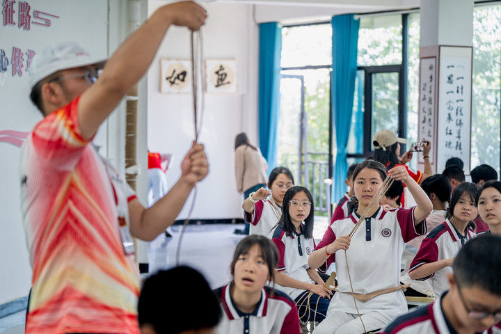 ? 2025年5月12日,云南省昭通市威信縣第一中學(xué)學(xué)生在大屏上紅色研學(xué)實(shí)踐基地體驗(yàn)編織草鞋。200余名學(xué)生在紅色研學(xué)實(shí)踐基地親手編織草鞋、制作蠟染,并參觀了扎西會(huì)議舊址、紅軍長(zhǎng)征過(guò)云南情景體驗(yàn)館,在實(shí)踐互動(dòng)中重溫紅色革命歷史。威信縣立足紅色文化資源優(yōu)勢(shì),先后建成扎西會(huì)議紀(jì)念館、紅軍長(zhǎng)征標(biāo)語(yǔ)館等紅色文化展館,以舊址遺跡為“教室”,以文物史料為“教材”,設(shè)計(jì)開(kāi)發(fā)多門(mén)精品研學(xué)課程和線路,在深入開(kāi)展紅色研學(xué)系列活動(dòng)中傳承紅色基因。