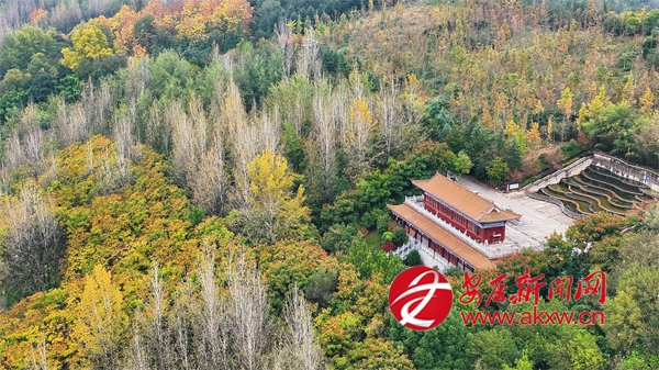 初冬時(shí)節(jié),漢陰的龍崗公園內(nèi)外層林盡染,與人文景觀交相輝映,構(gòu)成一幅流動(dòng)的山水畫卷。公園地勢連綿,園內(nèi)步道蜿蜒,亭臺(tái)錯(cuò)落。從空中望去,茂密的林木披上了紅、黃、橙交織的花衣裳,與常綠樹種相互點(diǎn)綴,猶如大地的調(diào)色盤。山頂?shù)凝垗忛w巍然屹立,在金黃烏柏與如火楓葉的簇?fù)碇?,成為整個(gè)公園的視覺焦點(diǎn)。登閣遠(yuǎn)望,漢陰縣城全貌盡收眼底,月河如帶穿城而過,與秋日晴空共同勾勒出“水天一色”的壯美圖景。(通訊員 文婷 徐歡)