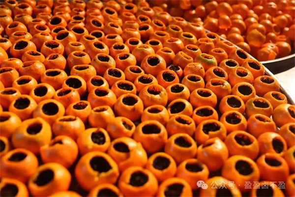 茶廠的工人們早已忙碌起來。他們將一個個挑選好的金錢桔仔細(xì)清洗掉表面的灰塵。特制的小刀輕輕掀開桔帽,果肉被小心掏出,留下一個完整的桔殼,然后再小心翼翼地清洗8至10次,直到桔皮的苦澀味兒全部去掉才能進(jìn)行攤涼。那認(rèn)真的模樣仿佛在對待一件件珍貴的藝術(shù)品,陽光透過窗欞,照在攤涼的桔殼上,泛著琥珀般的光澤。