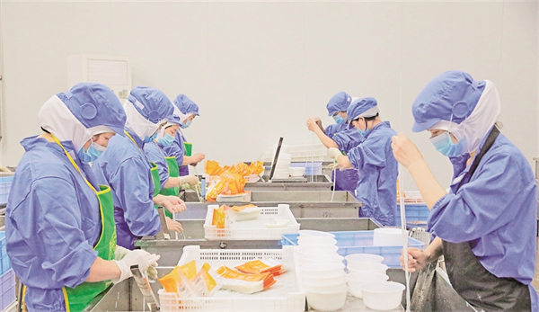 在五里工業(yè)集中區(qū)富硒食品產業(yè)園,悠源公司幾條生產線開足馬力生產,全力以赴備貨。工作間里,調味師張萍一絲不茍地稱量、拌料。根據不同產品,將食鹽、白糖等各種調味品嚴格按比例加入。