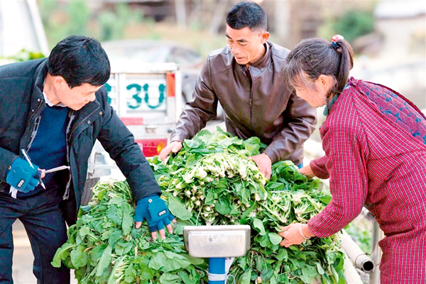 本網(wǎng)訊(通訊員 劉威 安少晨)正值冬季,紫陽(yáng)縣煥古鎮(zhèn)劉家河村的田野上涌動(dòng)著別樣的熱鬧。放眼望去,野油菜連成一片綠色海洋,肥厚的菜葉在陽(yáng)光下泛著鮮亮的光澤。田間地頭,村民們挎著竹籃、推著小車,彎腰采摘、麻利打捆;不遠(yuǎn)處的加工廠房里,分揀、清洗、稱重、裝壇的流水線有條不紊,勾勒出一幅“田間忙采收、車間忙加工”的豐收畫(huà)卷。