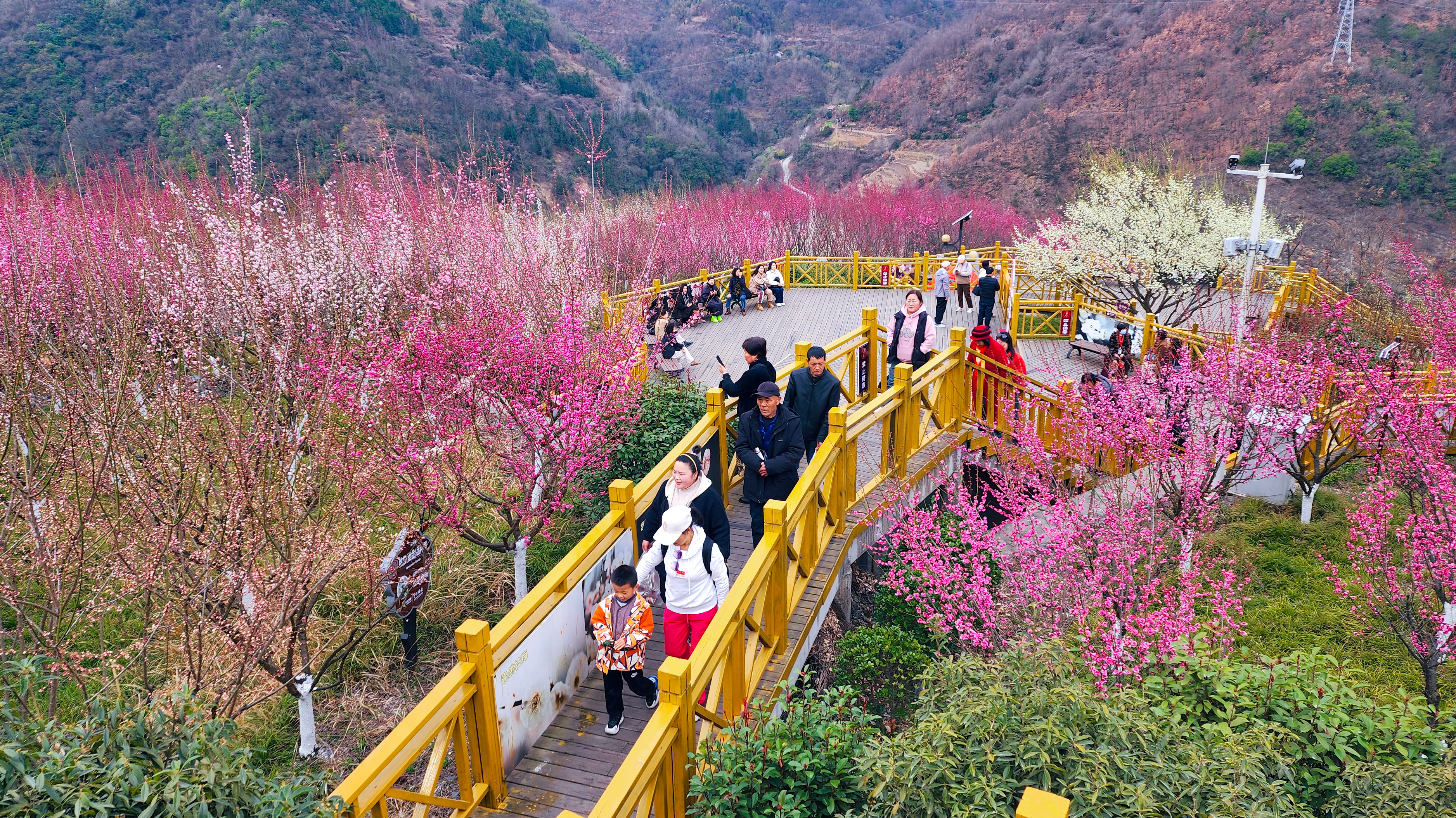 近日,寧陜縣梅子鎮(zhèn)子午梅苑的梅花凌寒盛放。百畝花海粉白相間、蔚為壯觀,吸引眾多游客聞香而至。(董長(zhǎng)松 攝)
