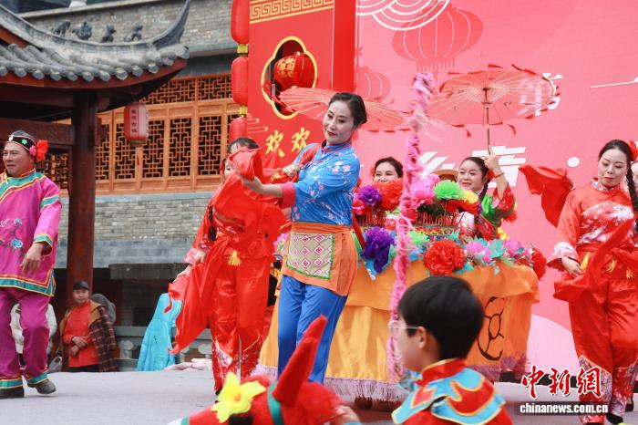 2月4日,全國“村晚”示范展示點(diǎn)活動(dòng)暨旬陽市“我在古鎮(zhèn)過大年”文旅活動(dòng)在陜西安康旬陽市蜀河鎮(zhèn)啟動(dòng)?;顒?dòng)緊扣“古鎮(zhèn)年味”元素,融合漢江航運(yùn)文化、鄉(xiāng)村振興等內(nèi)容,以村歌聯(lián)唱、戲曲薈萃、農(nóng)民走秀、農(nóng)產(chǎn)品展銷等形式,營造出了濃厚的春節(jié)氛圍。圖為活動(dòng)現(xiàn)場。 張昊 攝