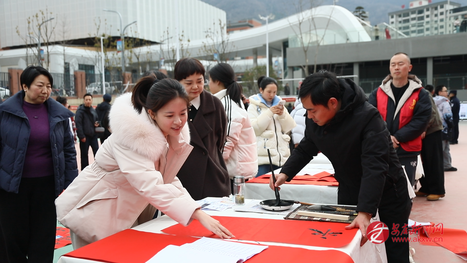 墨香迎新春,福澤潤(rùn)山鄉(xiāng)。2月9日,安康市“迎春送福進(jìn)萬(wàn)家 民企惠民促振興”文化志愿義寫春聯(lián)活動(dòng)走進(jìn)鎮(zhèn)坪,把傳統(tǒng)文化、新春祝福與優(yōu)質(zhì)產(chǎn)品送到群眾家門口,以文化惠民聚人心、以民企助力促發(fā)展。 姚登 屈光波 攝