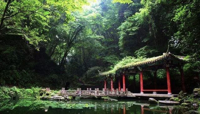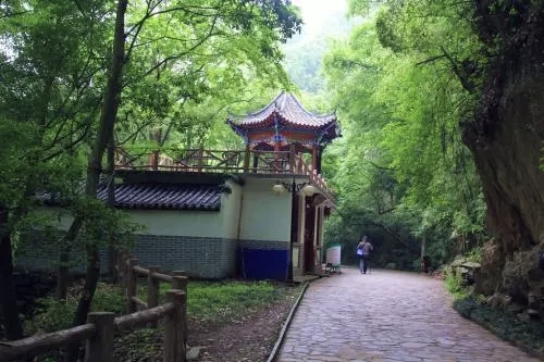 遠(yuǎn)觀(guān)東山之巔,閣樓崇麗,朱柱黃瓦,蒼林映襯,孑然聳峙。行至坡底,拾階而上,待達(dá)近前,但見(jiàn)一樓三疊,雕梁畫(huà)棟,四方飛檐,六角攢尖,鎏金寶頂,直指蒼穹,煞是壯觀(guān)。