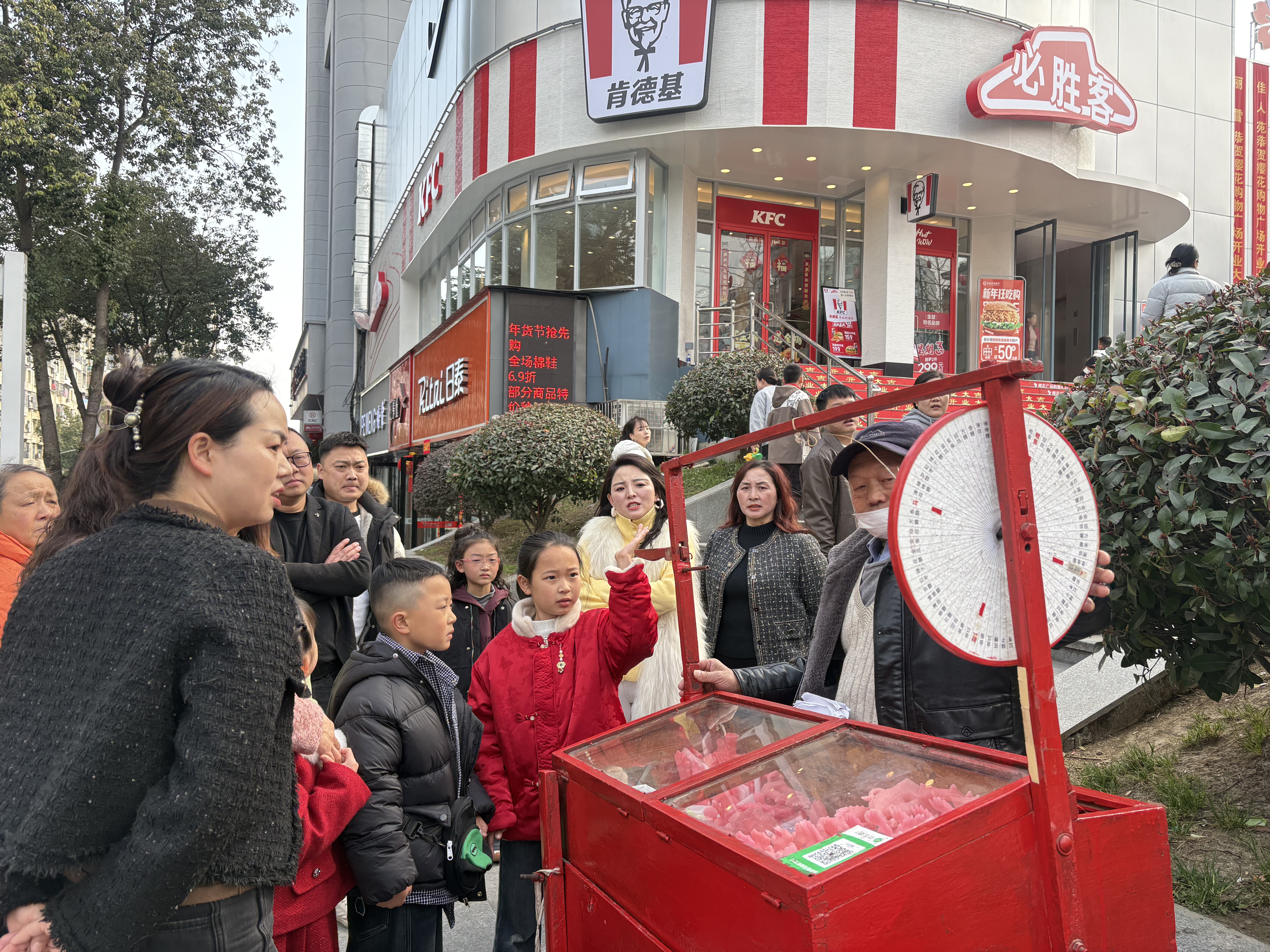 2月17日,石泉縣櫻花廣場(chǎng),市民體驗(yàn)傳統(tǒng)打彩游戲。劉丹 攝