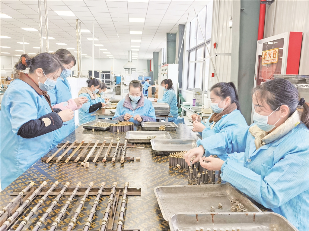 在陜西歐西克電子有限公司生產(chǎn)車間,各條生產(chǎn)線滿負(fù)荷運轉(zhuǎn),高壓陶瓷電容器、GPS天線片等產(chǎn)品有序生產(chǎn)。從電子器件成型、燒制、焊接,到絲網(wǎng)印銀、質(zhì)量抽檢,每一道流程都嚴(yán)謹(jǐn)規(guī)范、精益求精,以高標(biāo)準(zhǔn)保障產(chǎn)品質(zhì)量?!皬?fù)工復(fù)產(chǎn)后,企業(yè)將趕制訂單作為核心任務(wù),全力保障訂單交付?!必?fù)責(zé)人高維軍信心滿滿地表示,“2026年企業(yè)將聚焦生產(chǎn)設(shè)備更新與產(chǎn)能提升,加大科技創(chuàng)新和設(shè)備投入,爭取實現(xiàn)年產(chǎn)值9000萬元的目標(biāo),帶動更多群眾在家門口就業(yè)增收?!?/p>