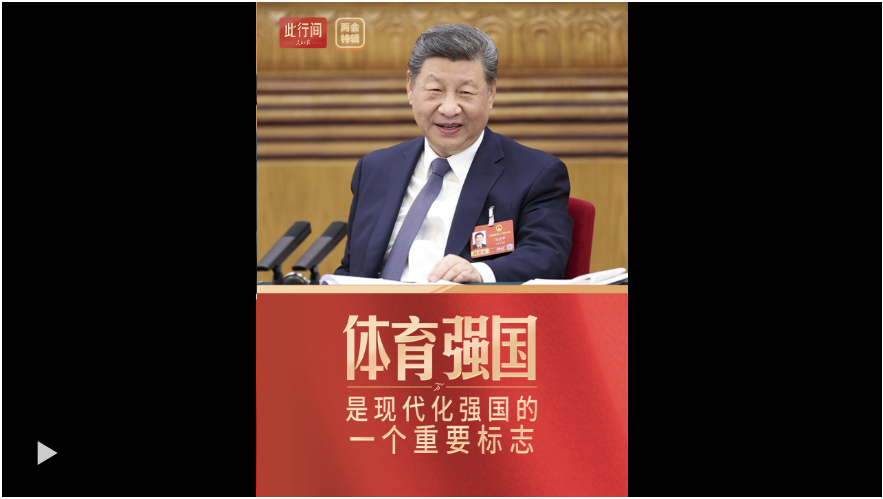 全國兩會“下團組”,習(xí)近平總書記深刻指出:“體育強國是現(xiàn)代化強國的一個重要標(biāo)志?!薄笆逦濉币?guī)劃綱要草案提出了體育強國等16個“強國”目標(biāo)。闊步新征程,要繼續(xù)弘揚中華體育精神,苦干實干,砥礪奮進!