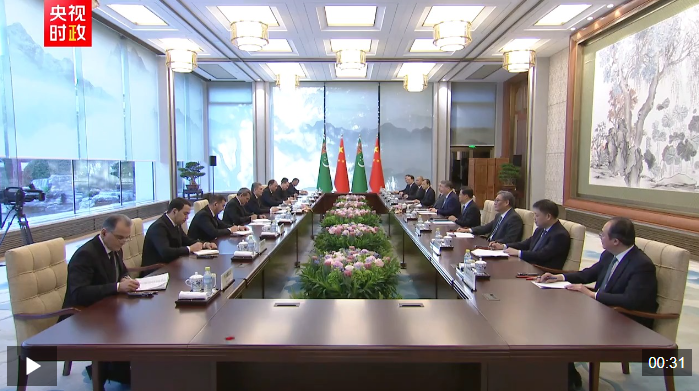 3月18日下午,國家主席習(xí)近平在北京釣魚臺國賓館會見來華進行友好訪問的土庫曼斯坦民族領(lǐng)袖、人民委員會主席別爾德穆哈梅多夫。
