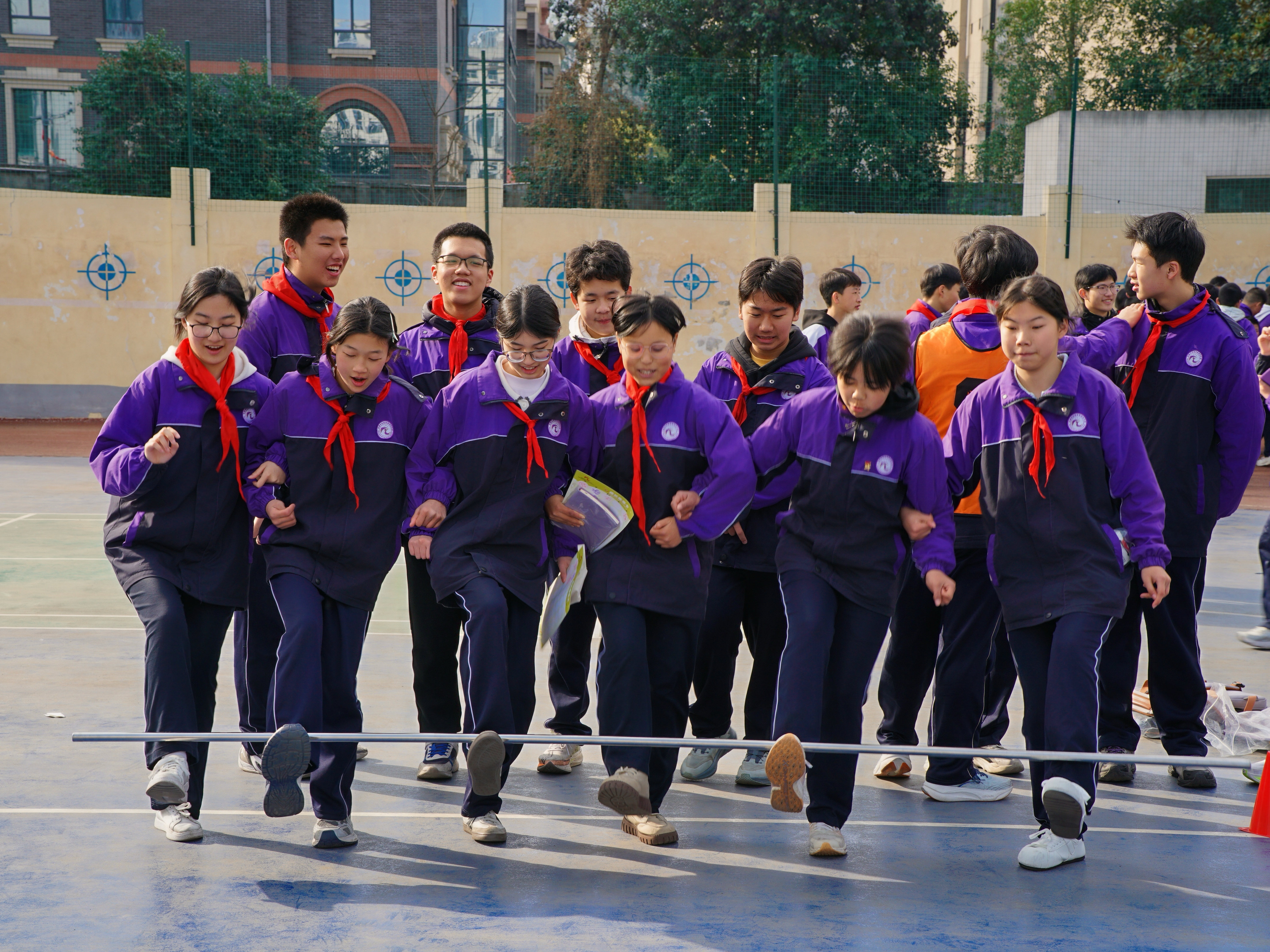 △ 安康中學(xué)教育集團(tuán)初中部游園會(huì)活動(dòng)中,學(xué)生們參加協(xié)作跳躍項(xiàng)目。馬黎明 攝