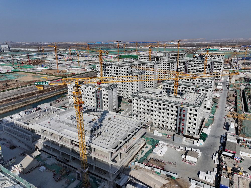 2021年是雄安新區(qū)大規(guī)模開發(fā)建設向縱深發(fā)展的關(guān)鍵一年。容東片區(qū)是雄安新區(qū)開發(fā)建設的先行區(qū)域,擔負著承接北京非首都功能疏解和安置回遷群眾的重要任務。這是2021年4月8日拍攝的雄安新區(qū)容東片區(qū)安置房項目建設現(xiàn)場(無人機照片)。2021年10月,容東第一批安置房開始交付。