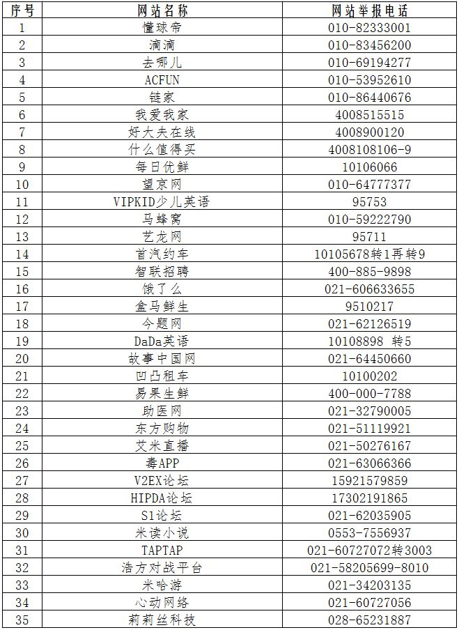 第六批520家網(wǎng)站公布舉報受理方式